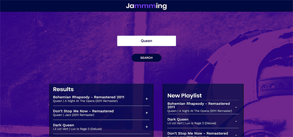 This web application allow you to search for musics, add them to a playlist and add this playlist to your Spotify account. This web app was also made during a codecademy formation. For this project, I used react and the Spotify API.